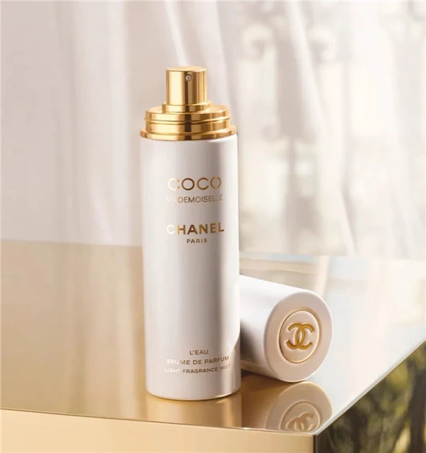 Coco Mademoiselle L'Eau是一款淡淡的芳香喷雾,可以自由喷洒在身体和头发上。它选用了实用的100ml包装。比原版更果味浓郁的这个版本以香柠檬和橙子的柑橘味开头,这使玫瑰和茉莉花瓣构成的花香中心变得柔和。而基调则被描述为柔软,温和和麝香的气息。香奈儿推荐这种形式为旅行携带的理想选择。
