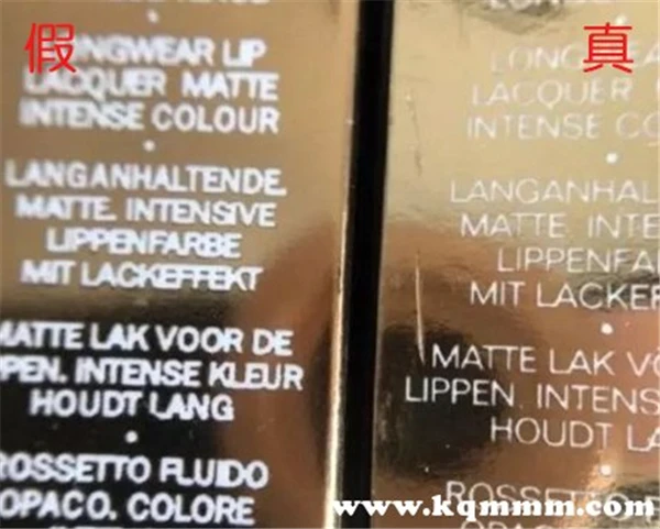 香奈儿口红正品的包装的文字字体比较细,同时也十分清晰。而伪造品的字体比较粗,同时字体看起来还很模糊。