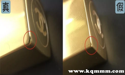 香奈儿口红正品的边角处比较圆滑,有一点弧度,拿在手上相对也比较舒服。而伪造品的边角处则是方方正正的。