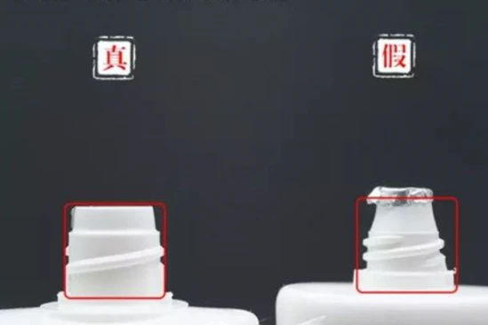 5、瓶口:瓶口密封处也能看出大牌产品对细节部分的把控,正品瓶口密封光滑平整,假货的密封处则有点力不从心的粗糙。
