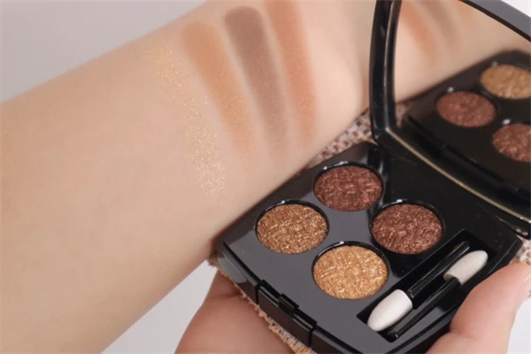 这次的限量款眼影,值得注意的还有其粉质的展现!不同于过往的粉质质地,这次的粉质手感更细腻、柔软犹如粉霜,不只显色力很高,且好推抹、好晕染,尤其是这款01古铜的金属色调,光泽饱满、亮粉细腻,绝对不怕积线卡色。