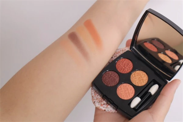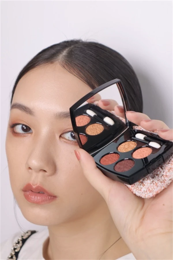 至于在眼影的调色上,香奈儿也从不让我们失望!第一款主打色03红绣,就是以亚洲女生最好驾驭且接受度高的砖红色、枫叶色搭配一点暖红棕的调性为基础,细致的金属珠光参杂在粉质中,就像斜纹软呢的金葱丝线般,为粉嫩色泽添入迷人亮点。