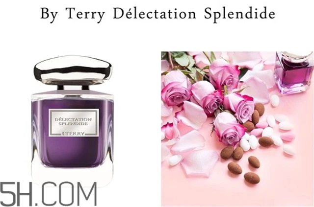 TerrydeGunzburg在2017年9月为ByTerry线推出的这款叫做DélectationSplendide的新香水,据称它的香气仿佛是“一道亮光”和“一场感官的盛宴”。这是由调香师CorinneCachen调制的一款甜美东方花香而辛辣的气息,带来的是肉桂和姜,摩洛哥玫瑰,马达加斯加香草,果仁糖和杏仁,以及印度尼西亚广藿香的西普类香味气息。前调:柠檬,印度姜,胡椒,八角茴香,土耳其烟叶;中调:摩洛哥玫瑰,果仁糖,杏仁,零陵香豆,李子;基调:安息香,肉桂,马达加斯加香草,印度尼西亚广藿香,麝香。