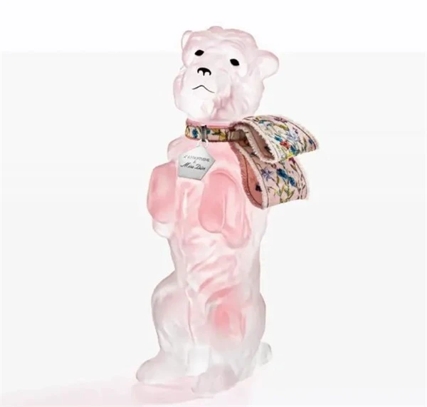 瓶身设计耗时 15 小时完成,由手工完成,堪称工艺杰作。Bobby胸前的闪亮奖章饰有“Miss Dior”标志,增添了特别的触感。香水瓶中充满了“ Miss Dior Eau de Parfum ”的香味,其特点是淡粉色。Flower Note 融合了优雅的玫瑰、高贵的鸢尾花和迷人的牡丹,营造出一种迷人的香味,就像一束万朵鲜花。