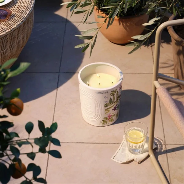 柠檬草也是独具夏日风情的香氛原料,以辛香、凉爽的香气与天然的防蚊功效著称。此次限量系列推出两款全新柠檬草香氛蜡烛:190g经典款及1500g户外款。1500g的烛杯装饰完整呈现了MatthieuCossé描绘的插画景致。这款富含绿意及花香的香氛蜡烛,是夏日炎炎、夜幕降临时户外纳凉的理想氛围伴侣。