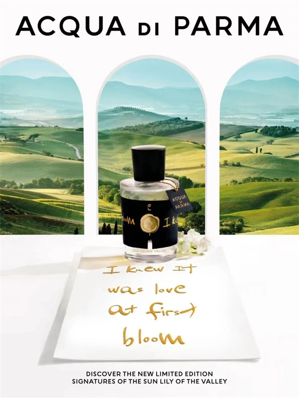 铃兰花在初春轻柔绽放,邂逅春日的第一缕日光,陌生而熟悉的相遇,仿若一见钟情,刹那间怦然心动。帕尔玛之水以香水瓶为信纸,用金色笔触镌刻爱情诗篇。“爱意汹涌,如花初绽”,时光荏苒,香气搭载的记忆与情感依然炙热如初。香氤弥漫,直抵内心世界,在脑海里重现与恋人从初识到热恋的心动缱绻,仿若阳光与铃兰般拥有同频默契,闻见彼此熟悉的气味,无需言说即能心领神会。