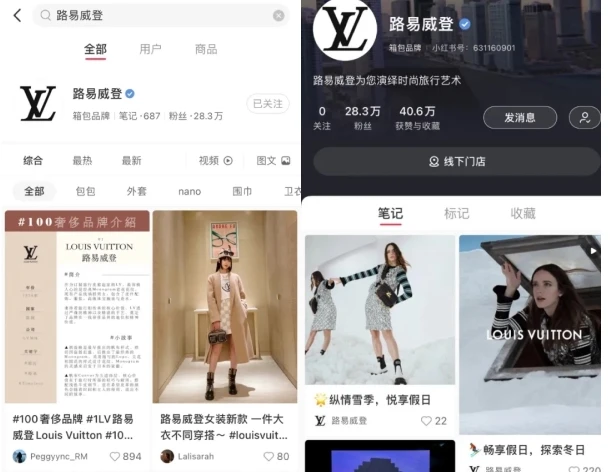 另一方面,相较于微信对文字内容展示的偏好和后台制作排版的复杂性,小红书对奢侈品牌的视觉展示更加友好,内容制作相对便利且可与Instagram共享物料,与平台用户的互动性强,集门户和互动平台为一体。