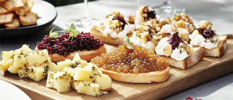 西餐中可以用手拿着吃的配餐,开那批是一类法国小食形式的统称。通常做成一口大小,外型美观,以成味为主,常出现于鸡尾酒会、冷餐会等场合。具体内容不定,比如小面包配鱼子,三文鱼、鹅肝酱、奶酪、鱼子酱等适合冷食的咸味食材较为常见。