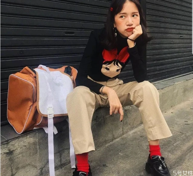 彩色袜子和某个单品同色的时候,会显得整身穿搭“交融感”更强,不会有多种色彩“四分五裂”的零散感。可以将袜子的颜色和身上的其他单品进行呼应,这样就更有搭配层次感哦~其实渐变色搭配也是很好的选择,比如就可以像下图如此,橘黄色的上衣就可以搭配颜色稍微深一些的袜子啦,这样穿起来太有小心机了~渐变色搭配值得尝试!