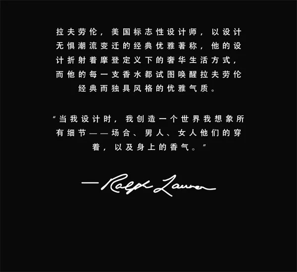 香水能够体现一个人的品味和魅力,但众口难调。在大部分人的认知里,女孩子比较适合花香果调,男人比较适合木质香调。“穿”过很多木质调香水,例如宝格丽的大吉岭茶、芦丹氏的白檀、蒂普提克的谭道、TF的灰色香根草......如果你喜欢木质调的香水,这款绝对是闭眼入,就是肖战代言的“拉夫劳伦”香氛,传说中的“肖战香”。