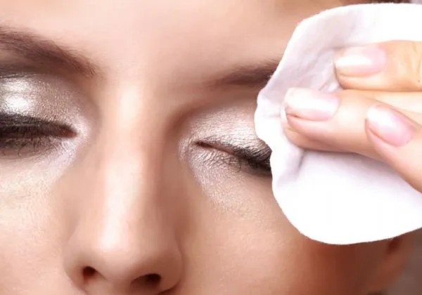 第三步 再按眼皮纹理由内向外抹,眼皮不好擦的地方就用棉签蘸卸妆水处理。