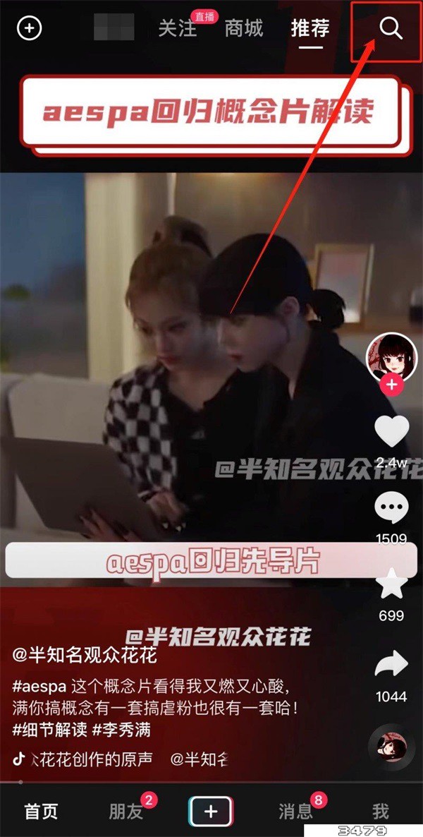 2、进入首页后点击右上角的放大镜图标,进入搜索页面;