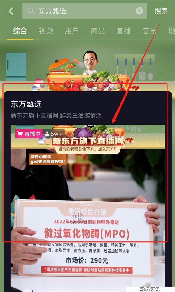3、在搜索栏输入【东方甄选】,点击搜索;
