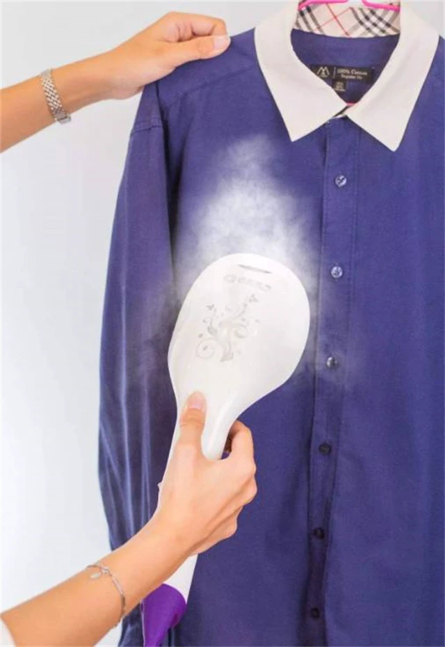 五、蒸汽熨斗烫平好多衣服专卖店里有一种蒸汽熨斗,只要把衣服用衣架挂好,接上蒸汽熨斗的电源,打开开关,衣服哪个地方皱了,用手柄推两下就可以啦,非常方便。这种蒸汽熨斗也很适合家庭用,不用时收起用一个小盒子就可以装下。
