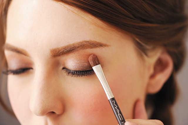 如果怕眼影颜色出错的话就选择大地色吧,百搭又绝对不会出错。闪亮的大珠光眼影不适合肿泡眼哦,所以选购的时候,可以选择一些哑光眼影。选择同一色系不同深浅的颜色,从眼睑下方一直到上方,从深到浅来上眼影,这样就能塑造出深邃的感觉。