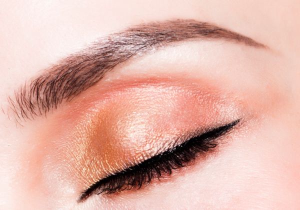 第二步 在紧贴睫毛根部的位置描绘眼线,并用肉橘色晕染,让眼妆的色彩看起来更柔和自然。