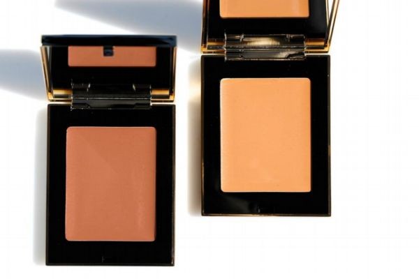 一般会用扁头的刷子,最好是带有一些向下的弧度,毛可以是纤维毛,这样刷的时候会比较的舒服,而且使用起来更顺手和方便。如果没有这种刷子,用高光刷其实也可以,总之毛质要比较顺滑一点,抓粉的能力即便弱一点也没有关系,主要是服帖和自然。使用刷子之前还要注意,一定要保证刷子是比较干净的,如果刷子太脏,刷完修容膏之后容易在脸上留下痕迹。选择的修容膏也要注意,如果是质地比较干,而且手推开不是特别容易的话,用刷子是最好的。如果质地比较轻薄,刷的时候轻一点平滑一点。修容膏一般用粉扑上色会比修容刷效果更好,因为修容膏一般是泥状的,用修容刷取粉很不方便,如果刷毛的质地比较柔软则更不方便蘸取,而粉扑则可以轻易取色,而且在脸上的过渡比较方便,也比较柔和。一般女孩使用棕色修容膏的比较多,这类的修容膏用粉扑轻轻蘸取一点点,就可以满足半边脸的使用需求。因为粉扑上面的质地比较粗,蘸取修容膏的面积就比较大,轻轻用力就可以蘸取很多修容膏。尤其是如果修容膏的颜色太深的话,我们就是掌握好蘸取修容膏的力度。在下颌角轻轻按压,然后均匀的向上慢慢晕染,粉扑会比修容刷更加方便。女孩在使用修容膏进行修容的时候,轻轻蘸取一点点可以在手背上先将多余的修容膏按压掉一些,然后再将粉扑上剩余的修容膏轻轻按压在耳下到下颌角拐点的位置轻轻拍打,然后再从下颌角拐点的位置像下巴侧面慢慢晕染,这个时候用粉扑按压之后,可以再用修容刷向上慢慢晕染,尤其是在颧骨的位置,这个位置上修容膏的话最好就使用修容刷了,因为修容刷不会蘸取太多的膏体,也就不会因为蘸取的膏体过多导致妆容显脏,而且修容刷还能照顾到发际线以及鼻梁两侧。