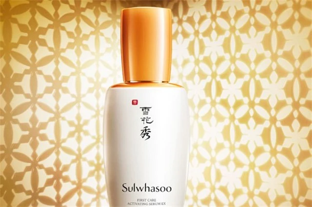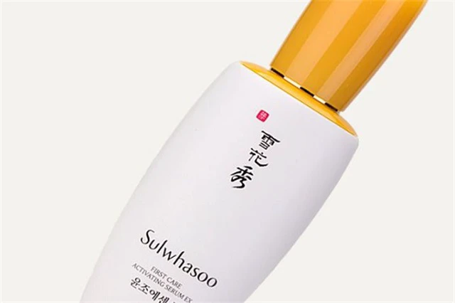 用手按压出雪花秀精华液,双手搓热,置于鼻端,轻嗅精华液的香气,而后用双手覆盖与两颊、下巴、额头等处,轻轻按摩,直到完全吸收。