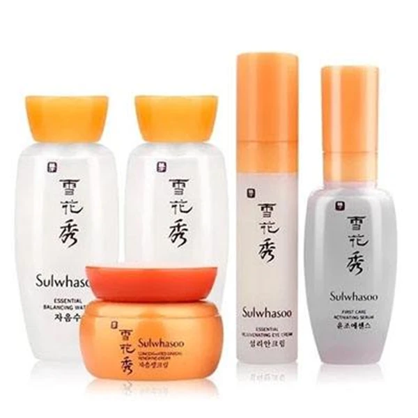 这个是雪花秀的闪理中样5件套,从上到下分别是滋阴水,滋阴乳,人参面霜,润燥精华,闪理眼霜。使用顺序是:润燥精华,水,乳,眼霜,面霜。