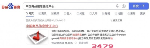 2、然后在百度上搜索“中国商品信息验证中心”,如图所示:
