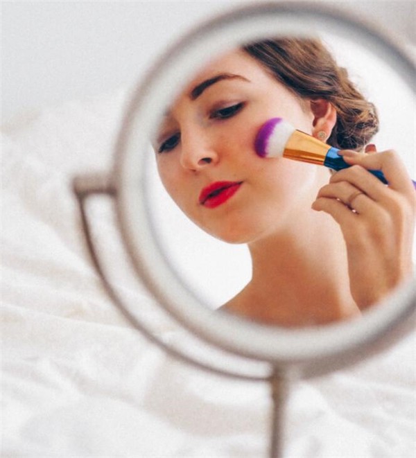 3、腮红:轻轻的用腮红刷将腮红轻轻的扫在脸颊。一点点的红晕,可以显的整个人可爱又好气色。