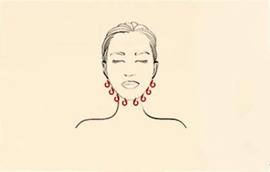 第三步:利用食指指腹,从下巴轻轻打圈按摩至耳垂,重复4次。