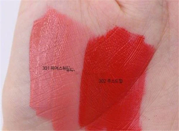 301和302都是哑光质地,涂抹后是非常柔软的天鹅绒感觉,这两个颜色搭配起来涂抹渐变非常好看。