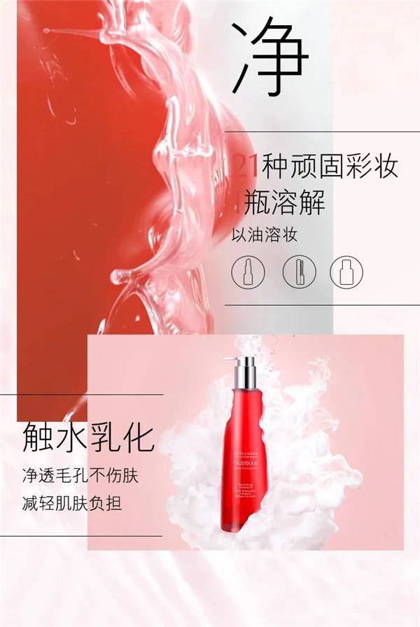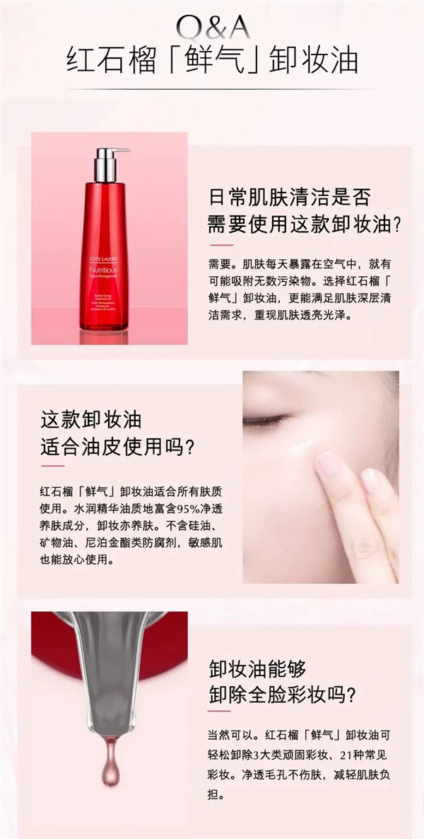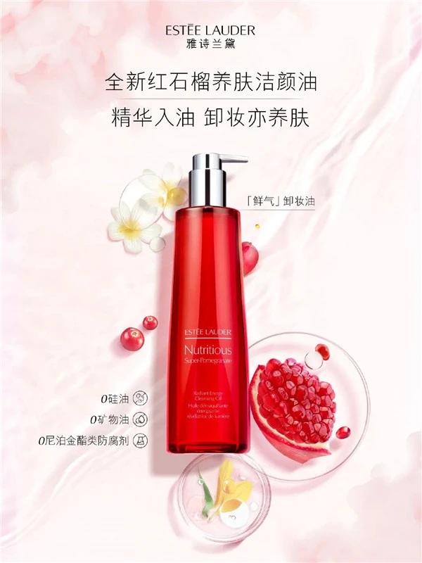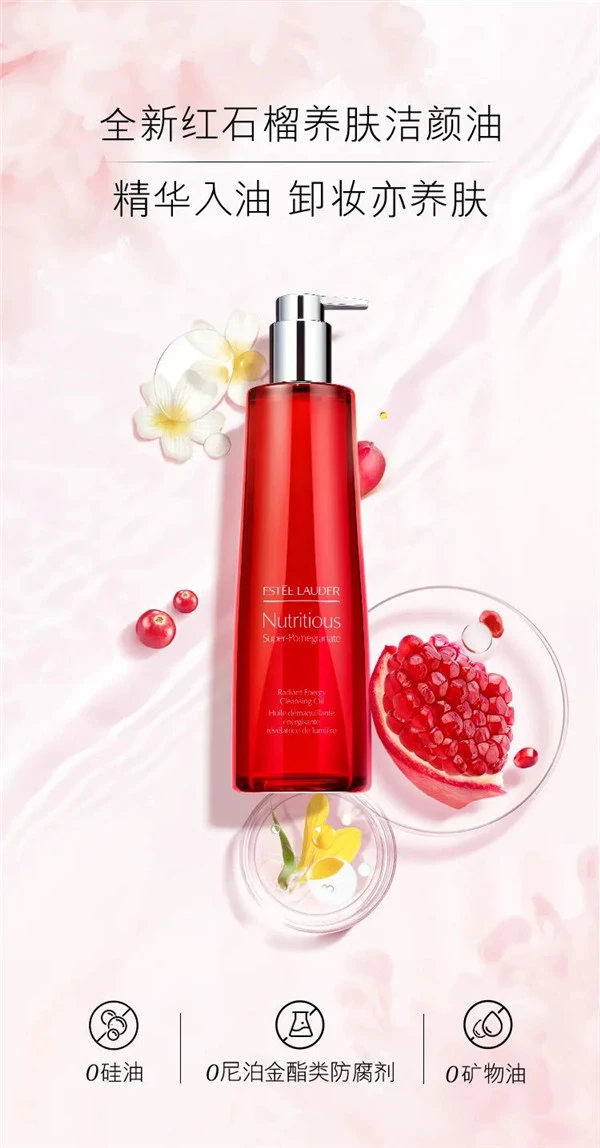 雅诗兰黛全新红石榴洁颜油,0矿物油、1瓶净卸21种彩妆!水漾轻盈,触水乳化;五重精华入油,实力抗氧。一瓶切换高效卸妆模式,彻底告别再来亿遍的卸妆日常!全新雅诗兰黛红石榴洁颜油,一瓶净卸21种彩妆。以油溶妆,触水乳化,一冲即净;水漾轻盈,不闷不腻。Pick新品红石榴洁颜油,高效卸妆模式。