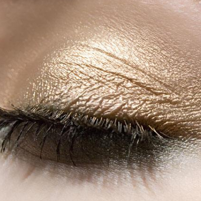 第四步:选择一个亮片色眼影用手指指腹沾取,按压在眼中、眼头及下眼睑前三分之处。