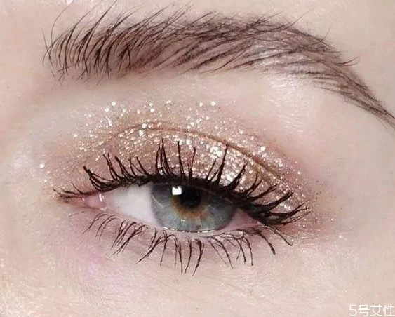 眼影亮片一般可以跟着眼影一起画在眼皮上面或者双眼皮褶皱处,像是细闪大一点的亮片可以粘在眼尾处打造元气妆容,或者贴一圈亮片在下睫毛处,亮晶晶的仙气十足!
