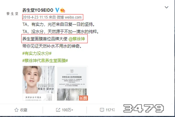 养生堂面膜代言人是谁,蔡徐坤养生堂面膜代言时间