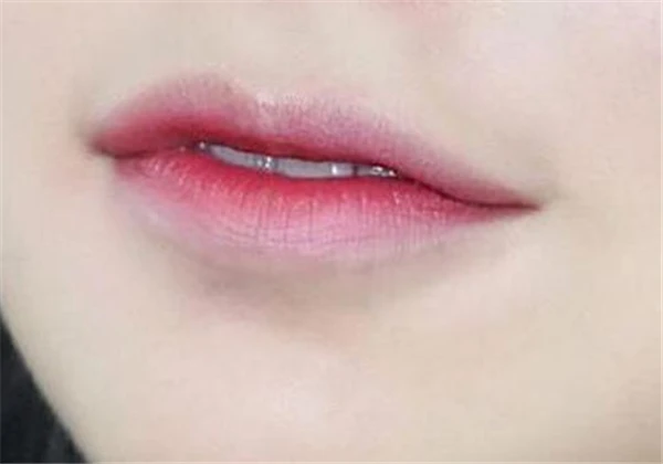 这个唇妆,其实就是在嘴唇靠里的地方是有颜色的,嘴唇外围是浅色或者没有颜色的,这样就可以呈现出咬唇妆的层次感。