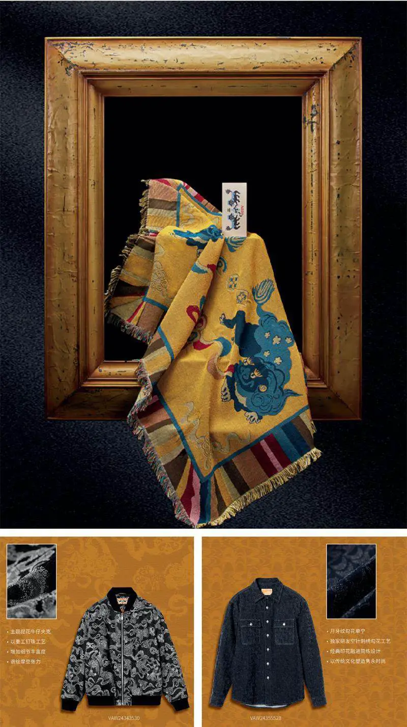 寻找失落的传统技艺,重拾民俗沧海遗珠。VICUTU威可多2024秋冬胶囊系列延续“拾遗录”非遗主题,在北京本土文化符号中,选取被誉为“燕京八绝”之一的“北京宫毯”,作为本季胶囊系列的灵感来源,将宫毯繁复精细的织造工艺、吉祥尊贵的图案纹样,融入服饰设计当中,演绎跨越时空的风骨与姿态,传递非遗宫毯“言必有意意必吉祥”的文化内核。