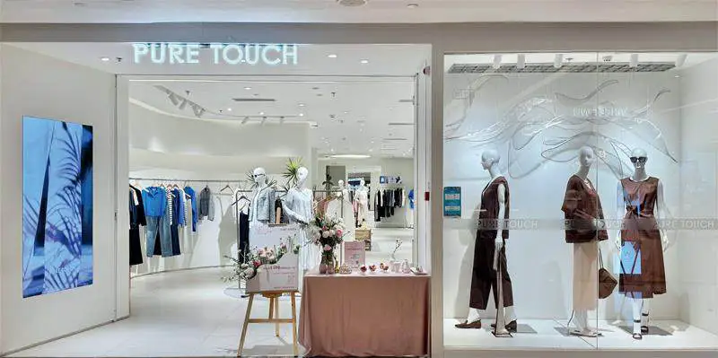 截至目前,PURE TOUCH有蓝色港湾、侨福芳草地、郑州大卫城、保百购物广场等共计16家线下门店,分布在北京、河北、内蒙古、河南等地。线上有天猫、抖音、微信商城、京企直卖等。近日,PURE TOUCH正式入驻北京时装周的线上商城。