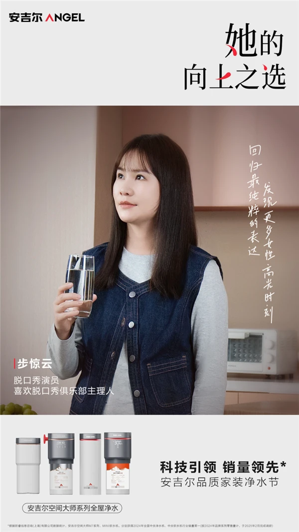 (2025年3月8日)在2025年国际妇女节来临之际,全球科技领先的净水专家安吉尔以「她的向上之选」特别企划,向每一位在时代浪潮中扩宽边界、追寻理想的女性致敬。这场跨界对话中,安吉尔不再局限于传统节日的温情叙事,而是将视角投向女性对生活的主动掌控——无论是职业赛道的深耕、生活方式的抉择,还是对家庭品质的极致追求,女性始终以“向上”的姿态定义着自我与未来。为此,安吉尔联合知名空间美学艺术家王心宴、科幻作家郝景芳、脱口秀演员步惊云三位不同领域的女性代表,通过她们的故事,诠释“向上之选”的深层含义。