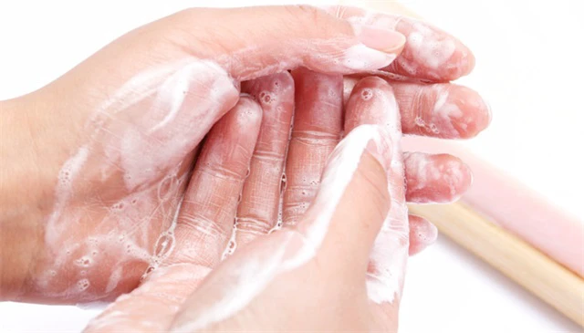 第三步 用温水将手部残留的角质霜都清理干净,然后用柔软的毛巾擦干双手。