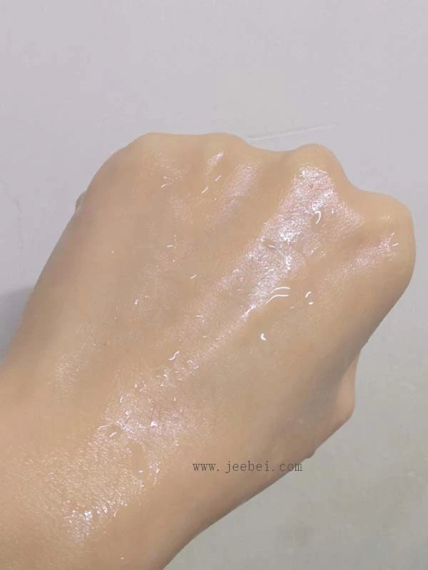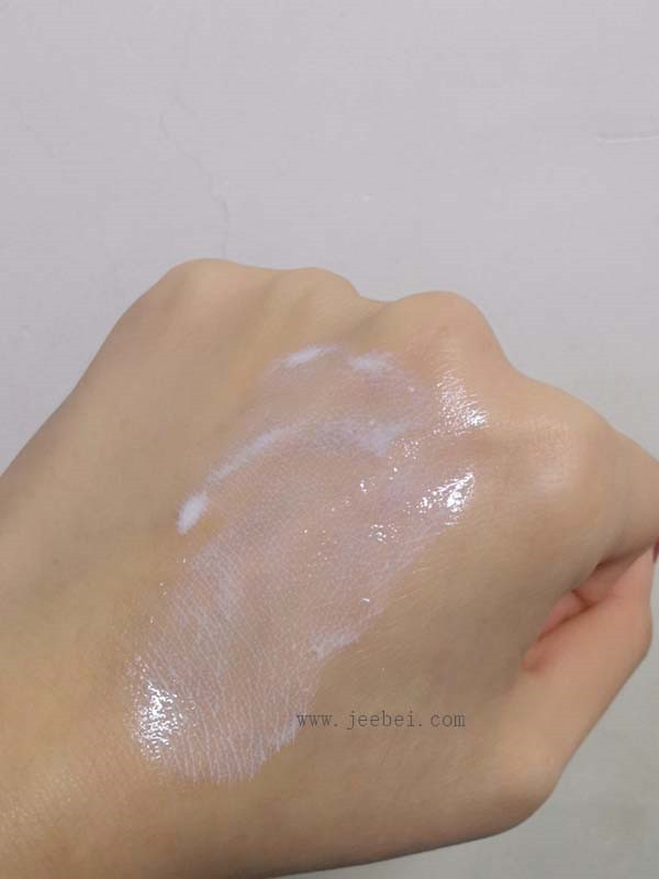 2、流动性很强的乳液状,好抹开。成膜速度挺快,成膜后膜感又很弱,几乎没有膜感,不泛白。
