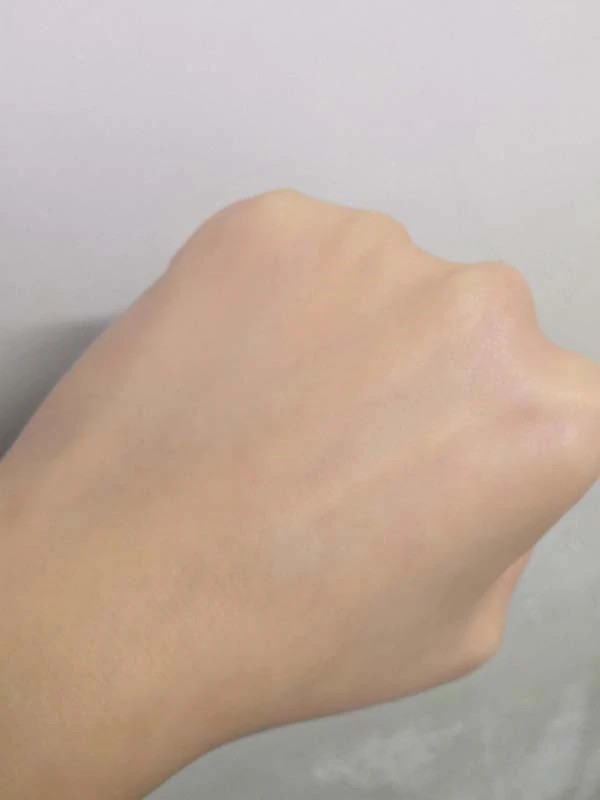 质地轻薄,很容易推开。刚涂抹略泛油光,但是成膜后是哑光质地,可以看出,与不涂防晒相比,成膜后明显有光泽感。