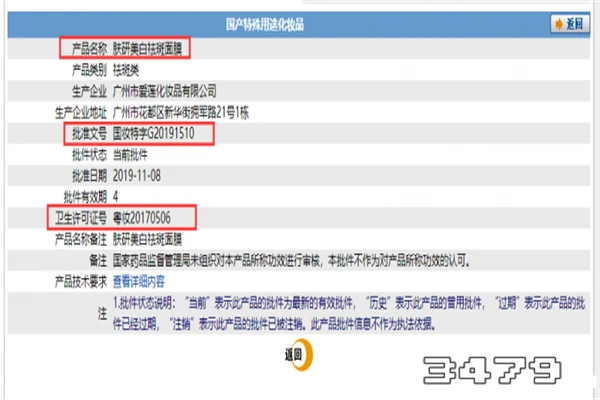 2、一枝春面膜还是比较安全的。一枝春这个牌子并不是三无产品,有自己的生产企业、生产地址等。旗下的不同款式面膜都有在国家药品监督管理局备案。以这款“一枝春 美白祛斑面膜”为例。其生产批号是“国妆特字G20191510”。如图所示: