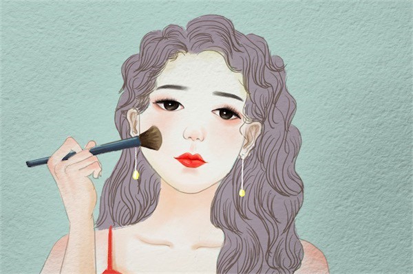 3、在面颊处可使用粉刷蘸好晒红,然后画圈的涂抹在脸颊上,使用打好的粉刷继续轻刷,在面颊上打造出比较圆润又十分可爱的效果,脸颊肤色和气色都会更加的淑女一点。