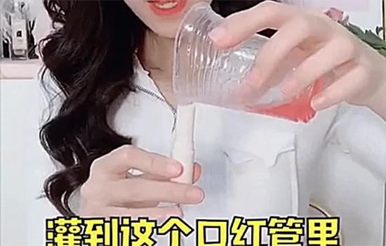 3、随后我们再直接将融化好的液体给倒进提前准备好的口红管里,再将口红给放到阴凉处晾干就完成了。