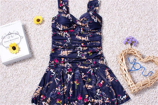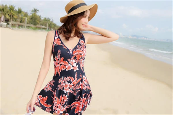 7.如果你的胸部很丰满而腰、臀部过于肥大的话,前开口式大V领的裙式泳衣非常适合穿用 。这种泳衣既浪漫又斯文,但选择时图案可选择比花哨的款式,漂亮的花朵更能衬托整体效果。