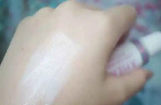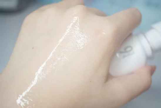 质地就像这样的乳白色清透乳液,流动性很好也很好推开。它的使用感真的很棒,还有一点清凉感。总体来说适合偏油皮,上脸真的水润一点都不油腻啊,吸收之后之后也很清爽。味道淡淡的很安心。