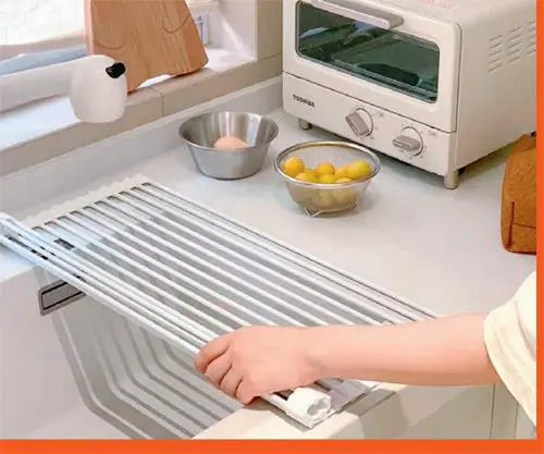 别看这款沥水架看起来平平无奇,其实非常好用。它可以随时被卷起来收纳;更重要的是,它是由食品级硅胶和镀锌铁等材料制成,虽然实物很沉,但轻轻松松就可以承重15千克。