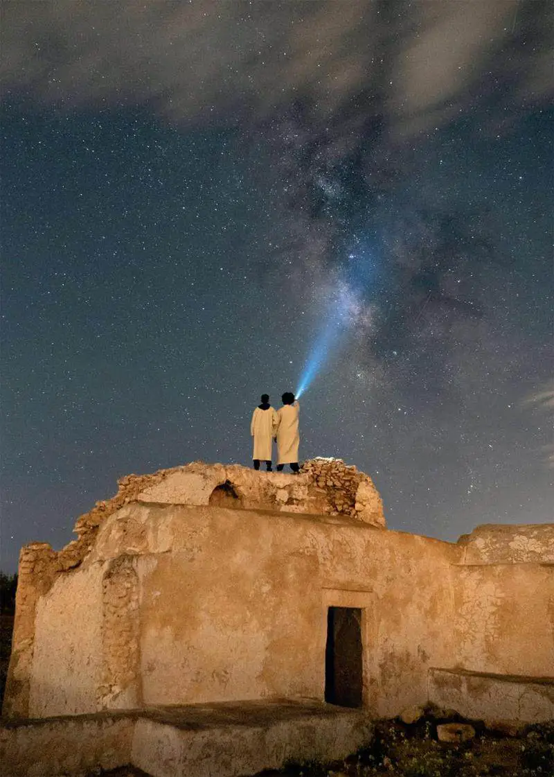 夜晚,在沙漠中的帐篷营地过夜,独特而难忘。帐篷里布置得温馨舒适。躺在柔软的沙地上,仰望星空,璀璨的银河仿佛触手可及。撒哈拉沙漠,这片地球上最广袤的荒芜之地,让人心灵宁静。