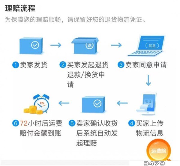 运费险退回的流程有2种,一种是由快递员上门取件,当卖家确认收货时,运费险赔偿金会在七十二小时内自动退到买家的支付账号;另一种是买家到快递点自行将商品寄出后,打开手机进入订单详情页,找到并点击进入“退货退款”的售后入口,上传退货取得的快递订单号,当卖家【确认收货】后,赔款基本会在72小时里完成打款。