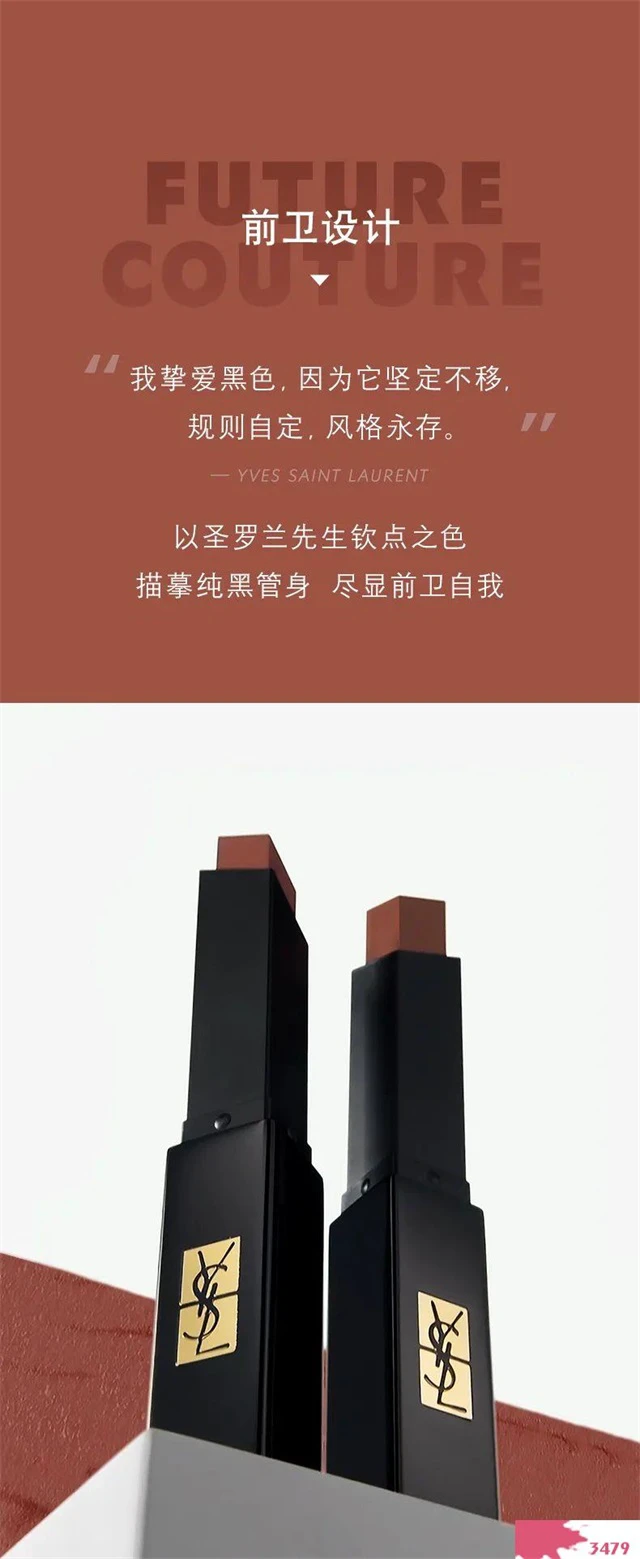 YSL圣罗兰美妆不断打破界限,在极致色彩与舒适质感中寻找支点,以高定哲思为日常妆容折射光芒。YSL小黑条,从高定时装面料天鹅绒中汲取灵感,糅合天鹅绒显色饱满、质感柔滑的特点,重新定义裸感半哑光口红。