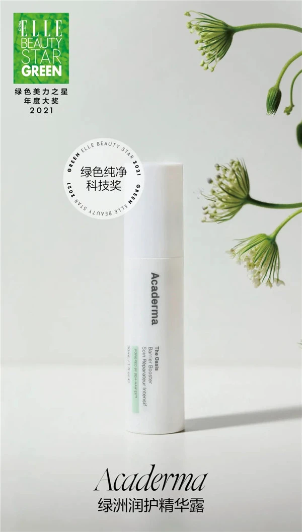 富含高浓度沙漠植物小花风车子提取物Seh-Haw EX®,配合β-葡聚糖复合物及仙人掌提取物,有效通过“舒缓褪红、强化保湿、屏障修护”三步,全方位精准解决屏障受损、敏感泛红、肌肤缺水干燥及炎症因子导致的皮肤慢性衰老等问题,是一款有效强健皮肤屏障的抗炎精华。Acaderma从源头到产品的每个环节都严格践行绿色纯净标准,产品获EWG(Environmental Working Group)认证,在提供高效护肤方案的同时将纯净概念贯彻始终,打造绿色未来。