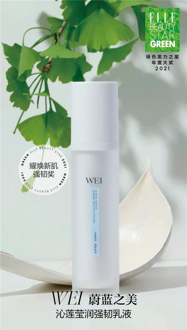 蔚蓝之美(WEI)秉承平衡为美,智慧草本的品牌理念,推出年度重磅新品沁莲莹润强韧乳液,绵柔轻盈质地,唤醒肌肤水感力,深层调节皮肤肌底状态。这个系列创新采用Zeta FractionTM独立技术,以纯物理方式(不添加任何化学溶剂)细胞破壁技术最大限度保留草本活性,将白莲整株萃取。活萃莲花复配金钗石斛等多种名贵草本并且糅合神经酰胺等现代科技成分,提升肌肤内在水活能量的同时修护受损屏障,建立健康肌肤的保护膜,让肌肤得到内外双重润泽修护,由内还原好肌底。