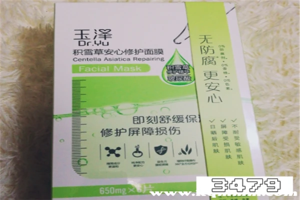 玉泽面膜主要是提取积雪草叶、牛油果树等植物当中的精华,加上低聚果糖、透明质酸钠等成分,对皮肤进行全面的补水修复,尤其是能够让敏感的肌肤变得更加稳定。